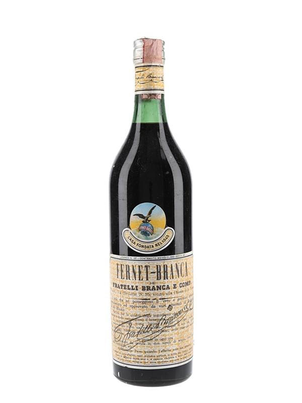 A litre bottle of Fernet Branca bitter liqueur which we estimate was bottled in the 1970s.