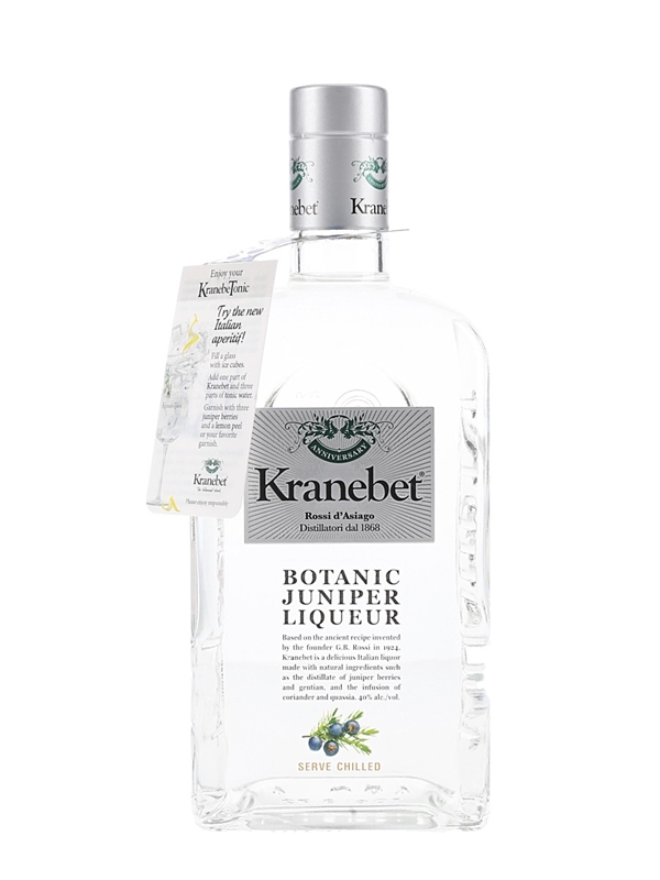 A bottle of Kranebet Botanic Juniper Liqueur from Italy.