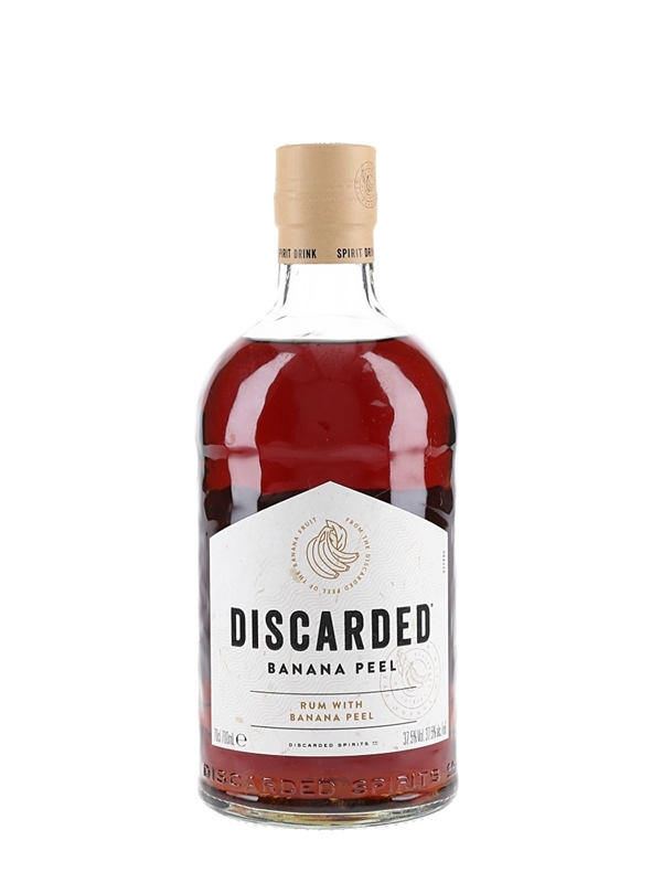 A bottle of Discarded Banana Peel Rum. This was produced in Scotland by William Grant & Sons Limited.