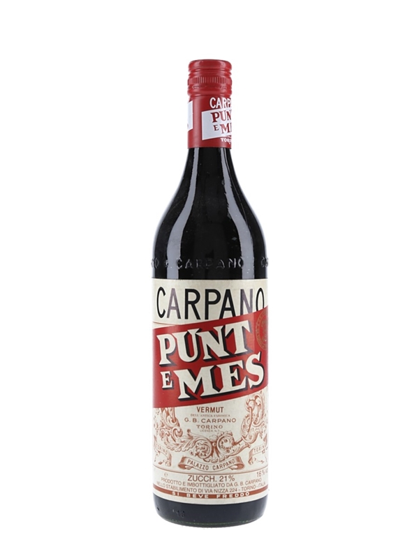 A litre bottle of Punt e Mes, the famously bitter red wine vermouth produced by Carpano in Turin, Italy. We estimate this was bottled in the 1980s.
