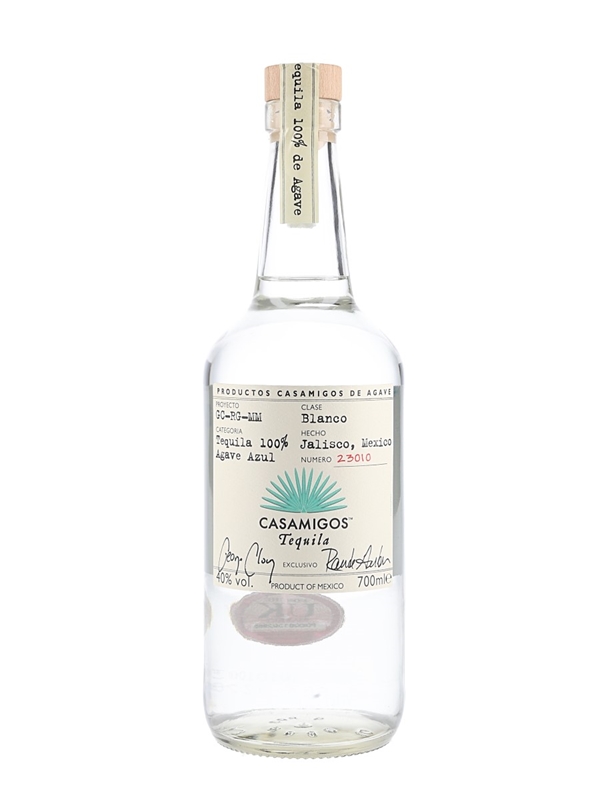 A bottle of Casamigos Blanco tequila from Jalisco, Mexico.
