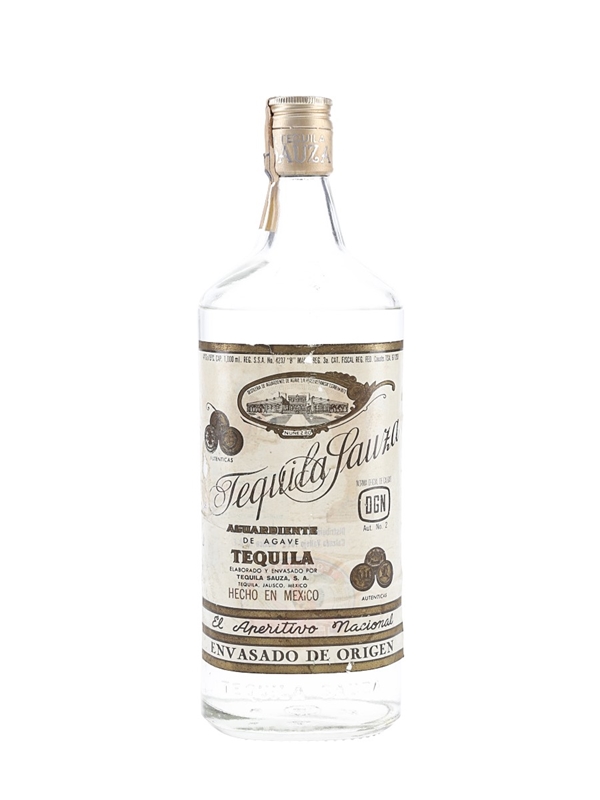 A litre bottle of Sauza Tequila produced in Mexico. We estimate that this was bottled in the late 1970s.