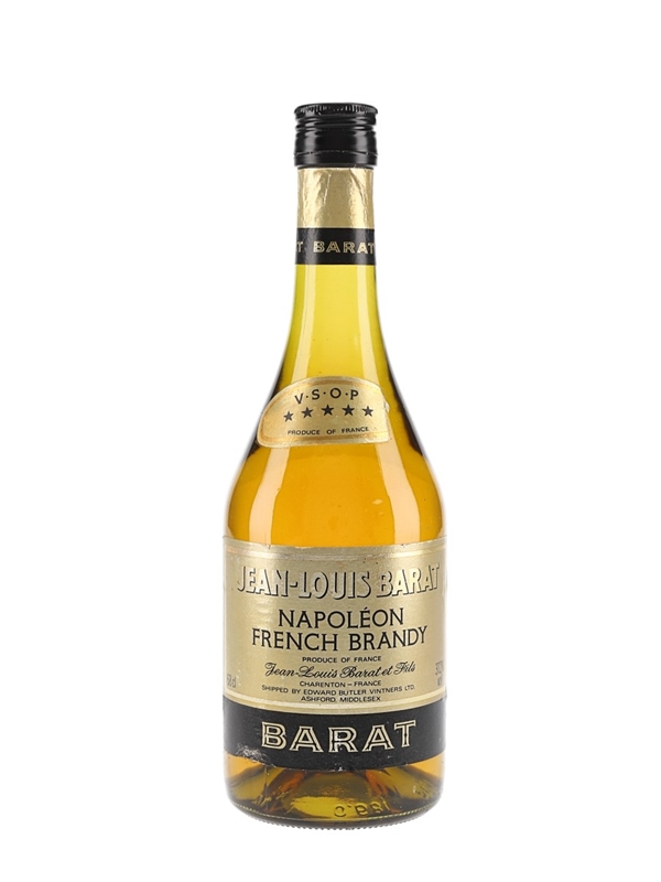 A bottle of Jean-Louis Barat 5 Star VSOP Napoléon Brandy. We estimate this was bottled in the 1980s.