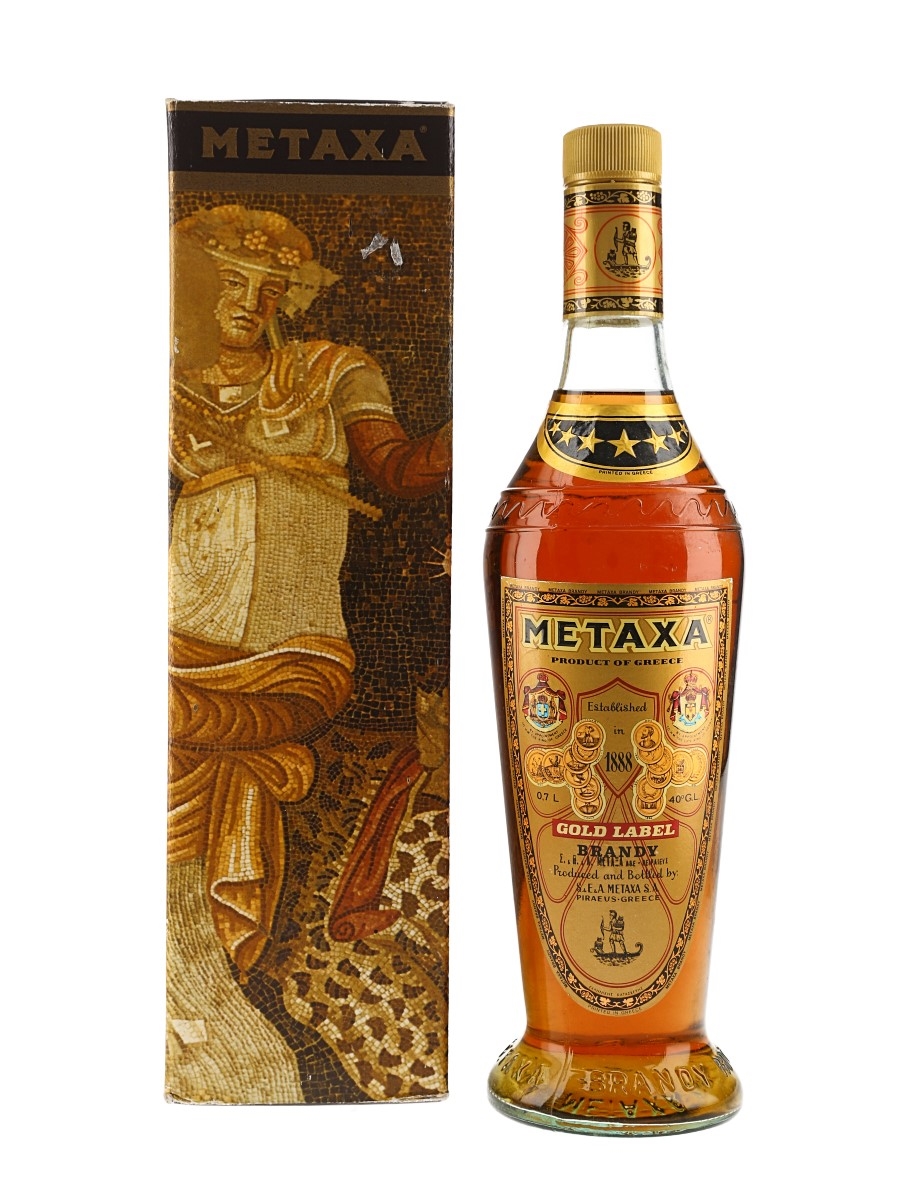 A bottle of Metaxa 7 Star Gold label brandy from Greece.