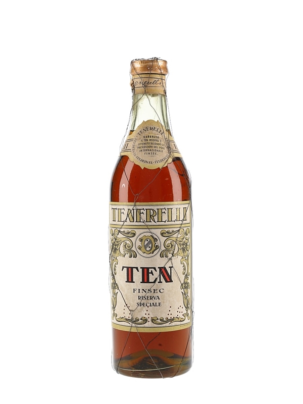 A 50cl bottle of Tenerelli Ten Finsec Riserva Speciale brandy produced in Italy.