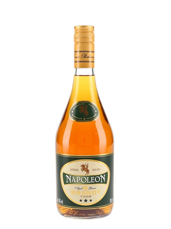 A bottle of Napoleon VSOP 3 Star Brandy produced and bottled in France for Aldi.