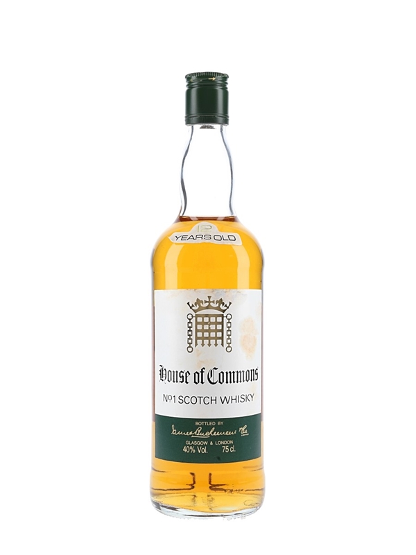 A bottle of House of Commons 12 Year Old Scotch Whisky bottled by James Buchanan & Co. We estimate this was bottled in the 1980s.