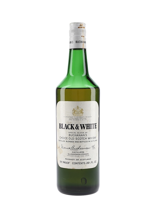 A bottle of Black & White Special Blend of Buchanan's Choice Old Scotch Whisky produced by James Buchanan, Glentauchers Distillery. We estimate this was bottled in the 1970s.