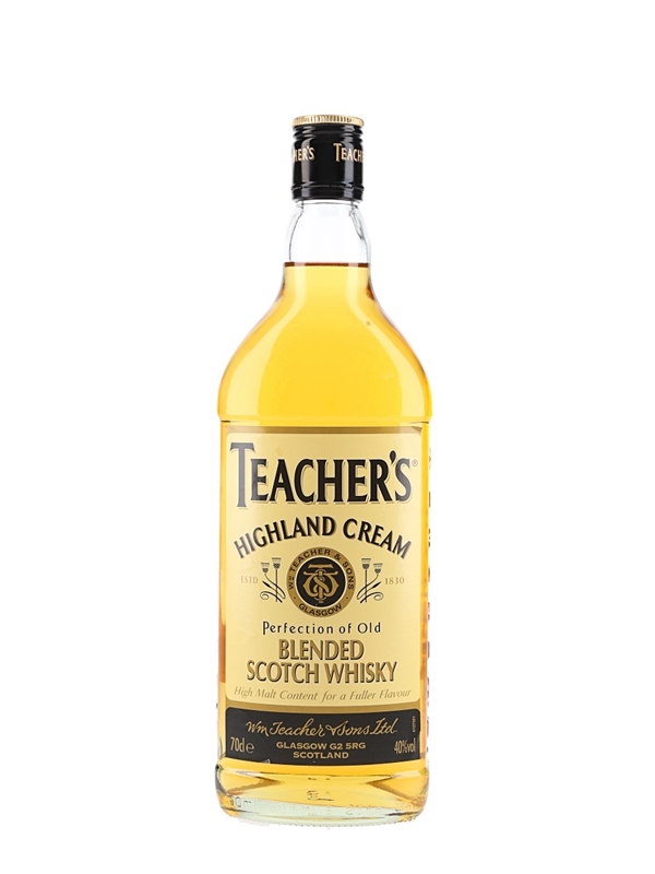 A bottle of Teacher's Highland Cream Scotch Whisky. We estimate this was bottled in the 1990s.