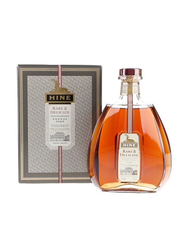 A bottle of Hine Rare & Delicate VSOP Fine Champagne Cognac.