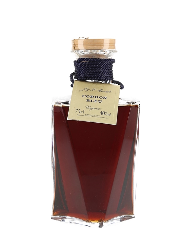 A bottle of Martell Cordon Bleu Cognac, presented in a Baccarat crystal decanter. We estimate this was bottled in the 1980s.