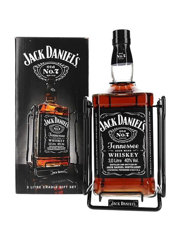 A double magnum of Jack Daniel's Old No.7 Tennessee Sour Mash Whiskey. This three litre special edition bottle comes with a metal easy pour cradle.