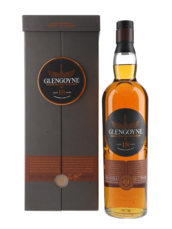 A bottle of Glengoyne 18 Year Old Highland Single Malt Scotch Whisky. This was matured in first fill Oloroso sherry casks before bottling at 43% ABV.