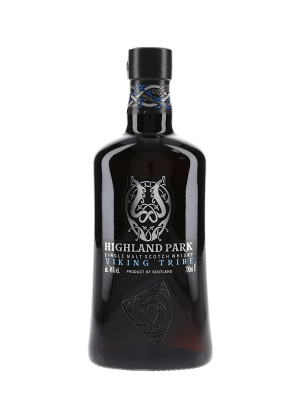 A bottle of Highland Park Viking Tribe Single Malt Scotch Whisky.