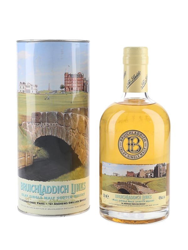 A 50cl bottle of Bruichladdich Links 'St. Andrews Swilcan Bridge' Islay Single Malt Scotch Whisky. The Links series limited edition bottlings were chosen by Jim McEwan, the former Head Distiller at Bruichladdich. This was bottled in 2003.