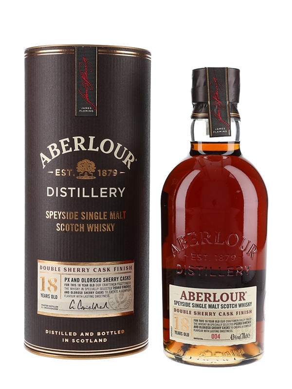 A bottle of Aberlour 18 Year Old Double Sherry Cask Highland Single Malt Scotch Whisky.