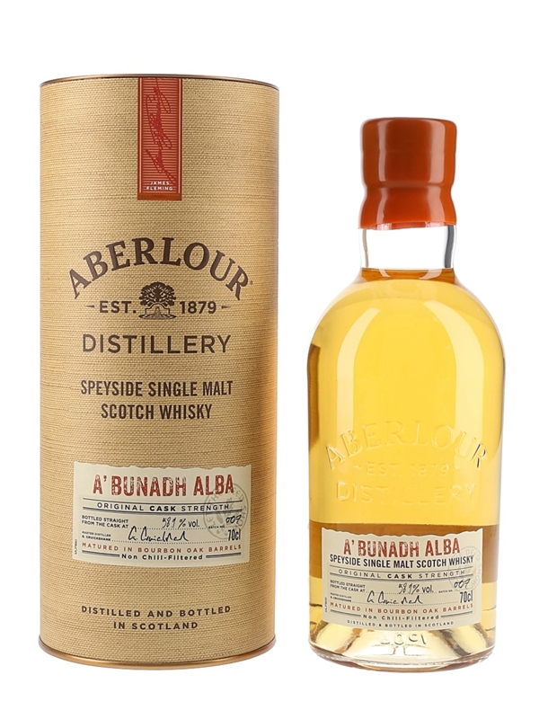 A bottle of Aberlour A'bunadh Alba Batch 7, matured in a bourbon oak barrels and bottled at 58.9% ABV.