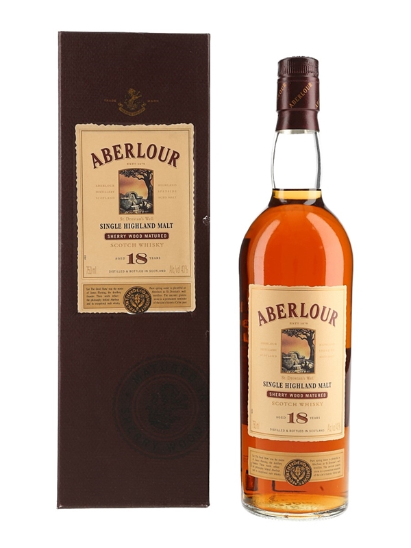A bottle of Aberlour 18 Year Old Highland Single Malt Scotch Whisky. We estimate this was bottled in the late 1990s.