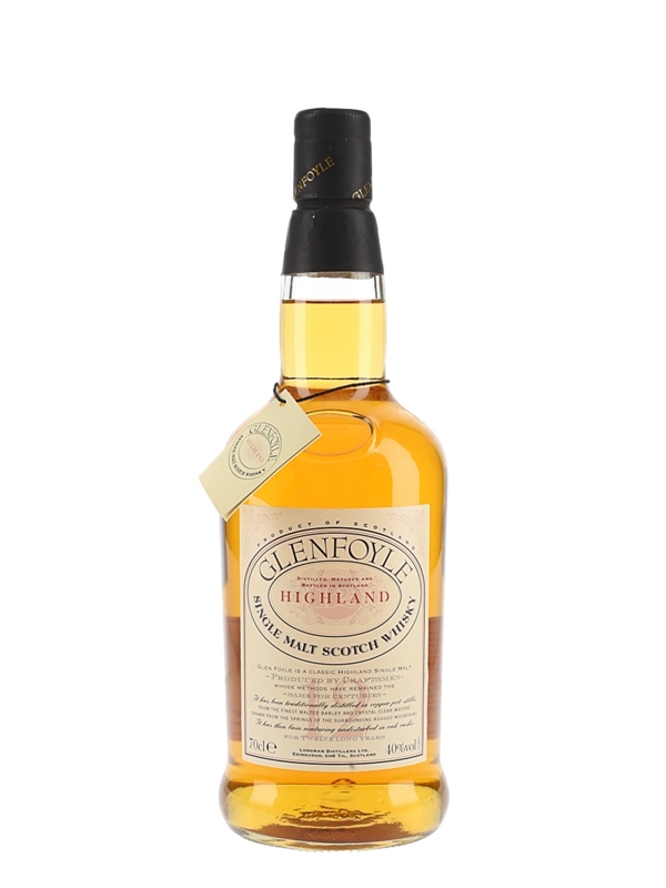 A bottle of Glenfoyle 12 Year Old Highland Single Malt Scotch Whisky.