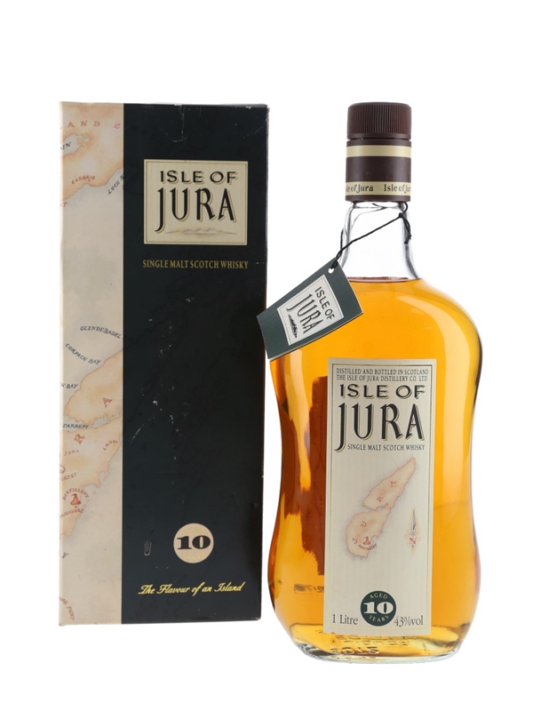 A litre bottle of Isle of Jura 10 Year Old Single Malt Scotch Whisky. We estimate this was bottled in the 1980s.