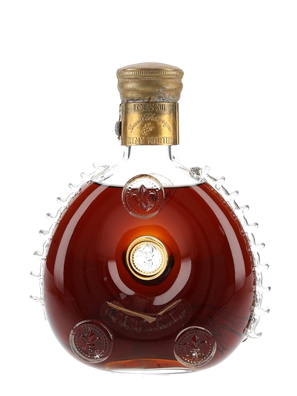 A bottle of Rémy Martin Louis XIII Cognac, presented in a Baccarat crystal decanter. This is composed of Grande Champagne eaux-de-vie aged between 40 and 100 years. We estimate this to be from the 1990s.