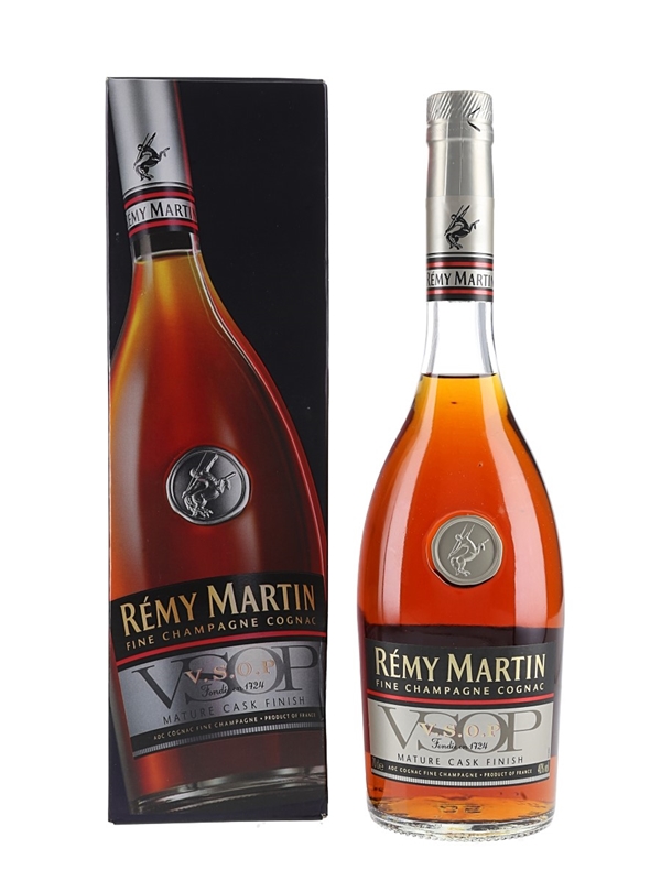 A bottle of Rémy Martin VSOP Mature Cask Finish Fine Champagne Cognac. The bottling code indicates this was bottled in 2017.