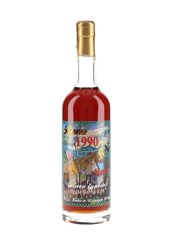 A bottle of Zapatera 1990 Reserva Single Barrel rum from Nicaragua. This was bottled from barrel number 74.