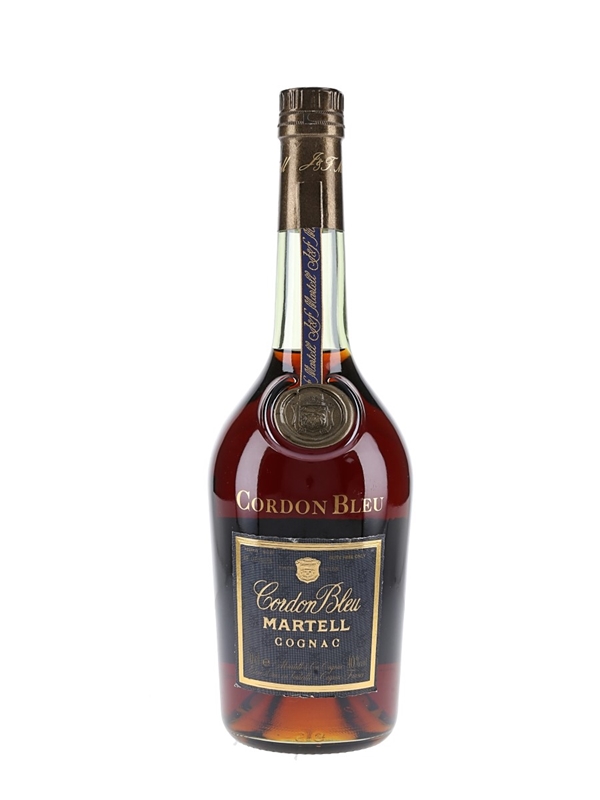 A bottle of Martell Cordon Bleu Cognac. We estimate this was bottled in the 1980s.