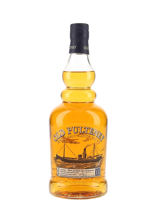 An old presentation bottle of Old Pulteney 12 Year Old with a screen printed label. Bottled prior to 2013, when Wolfburn took the title of Scotland's most northerly mainland distillery from Old Pulteney.