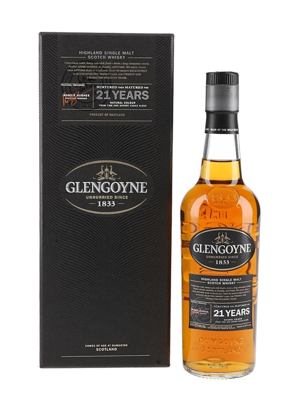 A 20cl bottle of Glengoyne 21 Year Old Highland Single Malt Scotch Whisky, matured in sherry casks.