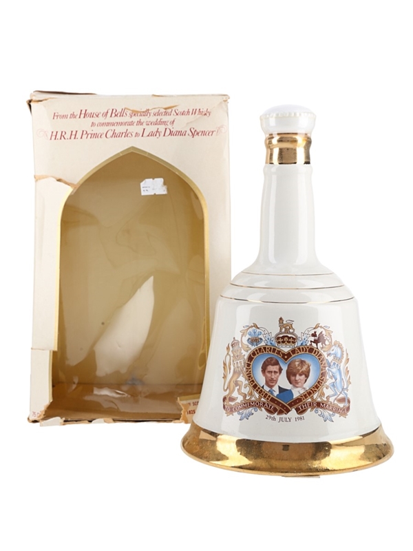A bottle of Bell's Scotch Whisky presented in a porcelain wade decanter and released in 1981 to celebrate the marriage of Prince Charles and Lady Diana Spencer.