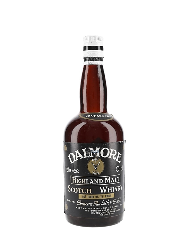 A bottle of Dalmore 12 year old Highland Single Malt Scotch Whisky, bottled by Duncan MacBeth & Co. We estimate this was bottled in the 1960s.