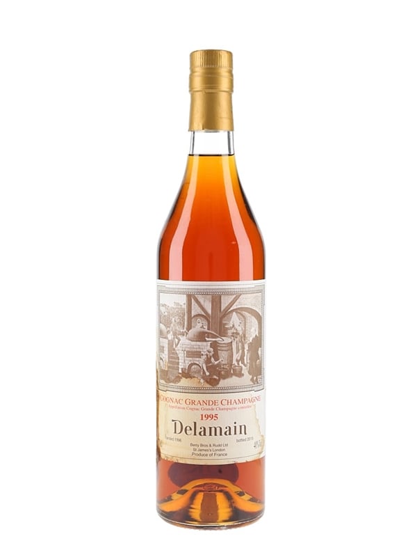 A bottle of Delamain 1995 Grande Champagne Cognac. This was landed in the UK in 1996 and bottled by Berry Bros & Rudd in 2015.