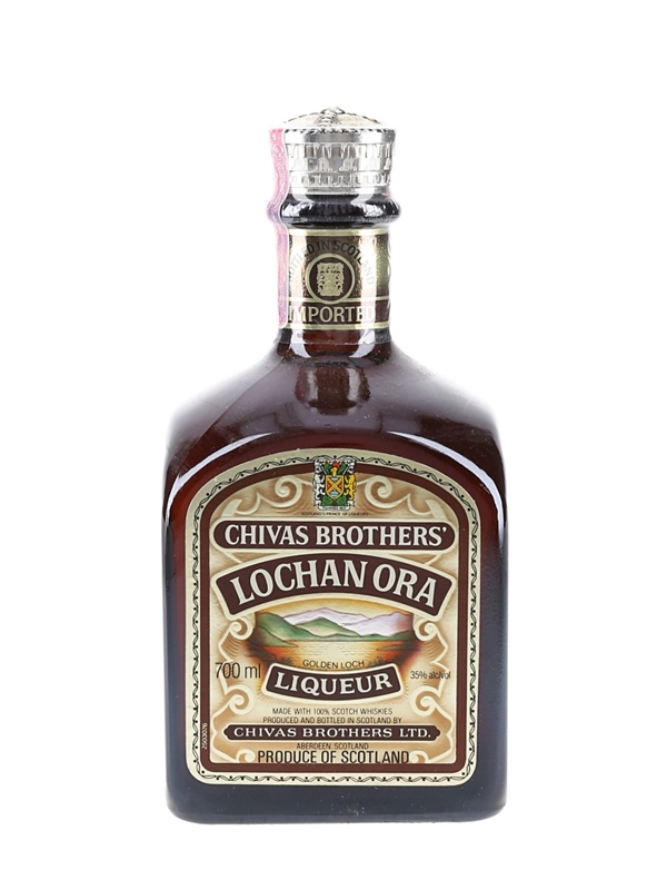 A bottle of Lochan Ora liqueur, produced and bottled by Chivas Brothers Ltd. with Chivas Regal Scotch whisky and flavoured with honey and a secret recipe of herbs and spices. This was imported by Orlando Wyndham to South Australia, we estimate in the 1990s.