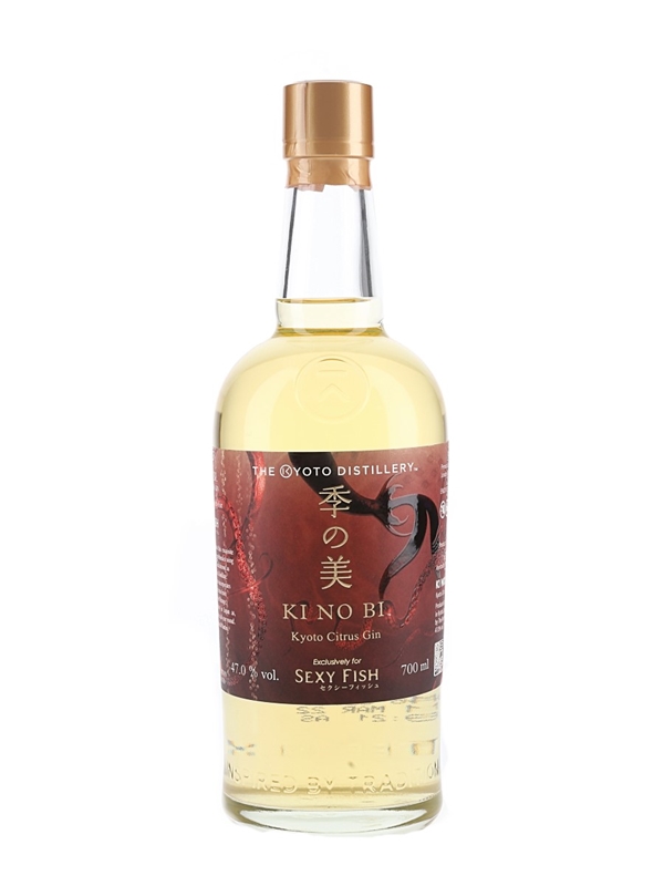 A bottle of Ki No Bi Kyoto Citrus Gin bottled exclusively for Sexy Fish at 47% ABV.