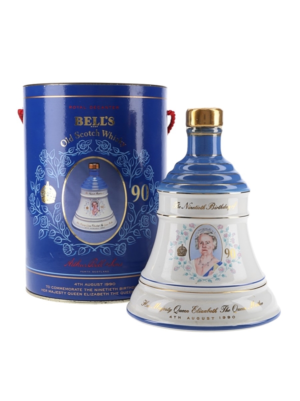A bottle of Bell's Old Scotch Whisky presented in a Wade ceramic decanter released to celebrate the 90th birthday of the Queen Mother on 4 August 1990.