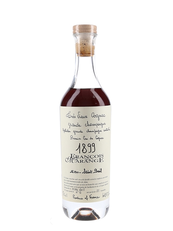 A bottle of Francois de Marange 1899 Grande Champagne Fine Liqueur Cognac. This was produced and bottled in France by Francois de Marange and bottled at 41.5% ABV in March 2005.