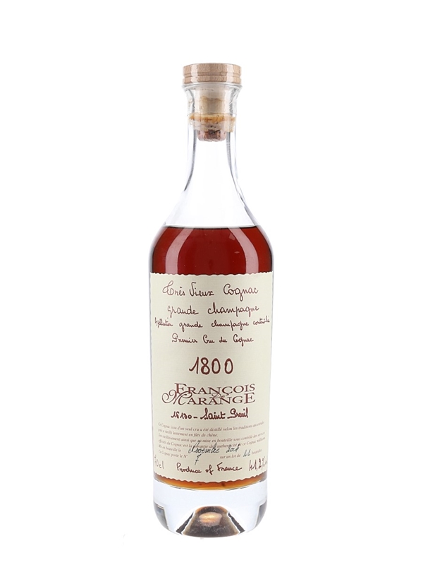 A bottle of Francois de Marange 1800 Grande Champagne Fine Liqueur Cognac. This was produced and bottled in France by Francois de Marange and bottled at 41.2% ABV in November 2004.