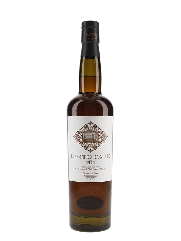 A bottle of Canto Cask 6 Single Cask Selection from independent bottler Compass Box. Cask number 6 was chosen by Compass Box Whiskymaker, John Glaser, for sale in the UK market, with all profits donated to a UK based charity.