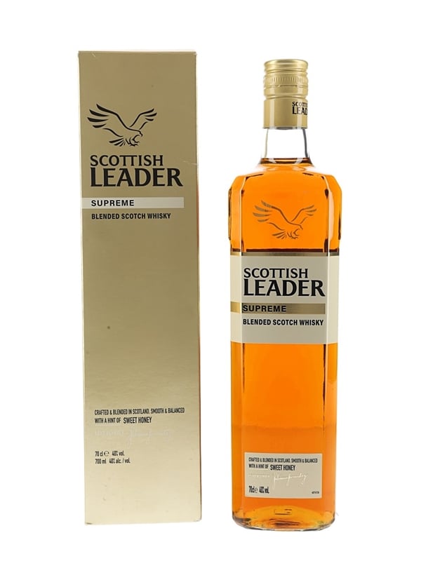 A bottle of Scottish Leader Blended Scotch Whisky finished in Supreme.