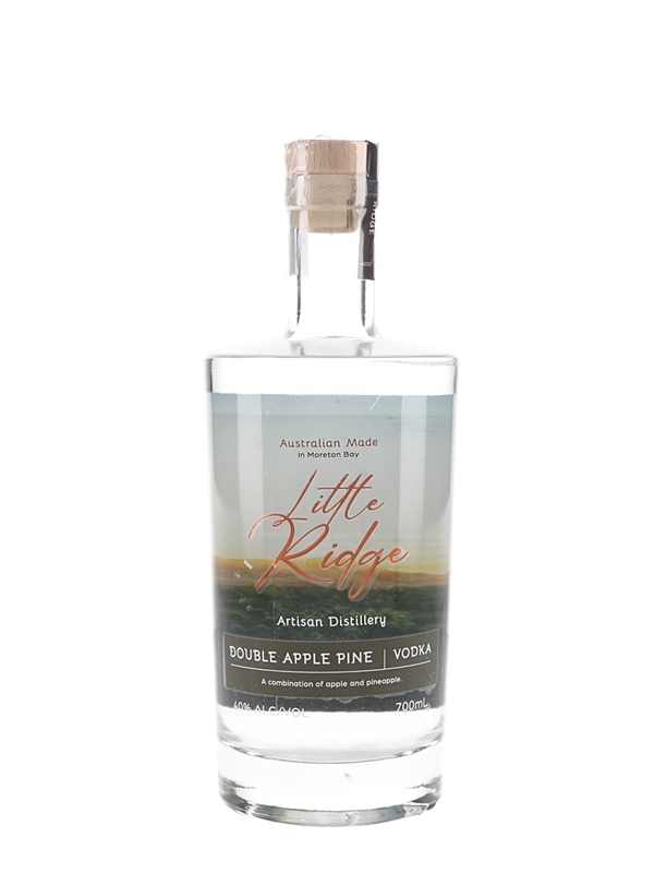 A bottle of Little Ridge Double Apple Pine Aged Vodka, produced in Australia.