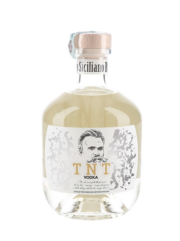 A bottle of TNT Artichoke infused Vodka produced in Italy and bottled at 40% ABV.