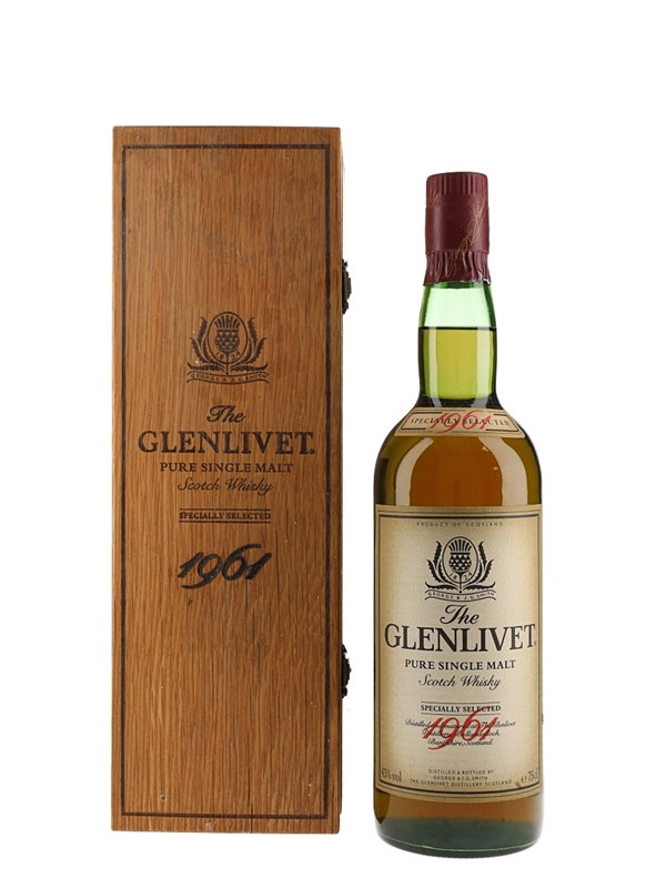 A bottle of Glenlivet 1961 Special Selected Highland Single Malt Scotch Whisky.