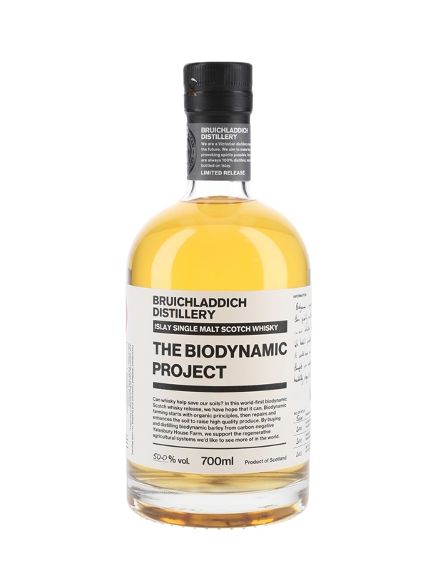 A bottle of Bruichladdich 10 year old The Biodynamic Project Islay Single Malt Scotch Whisky. This was distilled in 2011 and bottled at 50% ABV in 2021.