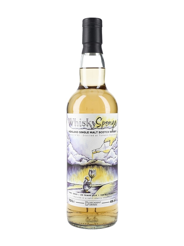 A bottle of Tomatin 29 Year Old Edition No.82 Single Malt Scotch Whisky. This was distilled in 1994, matured in a Refill Sherry Hogshead and bottled in 2023 for Whisky Sponge.