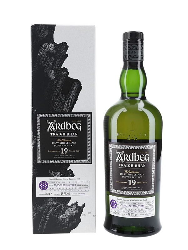 A small batch release of Ardbeg 19 Year Old Traigh Bhan Small Batch Release The Ultimate Single Malt Scotch Whisky, matured in a combination of American oak and oloroso sherry casks and bottled on 03 May 2023 at 46.2% ABV.