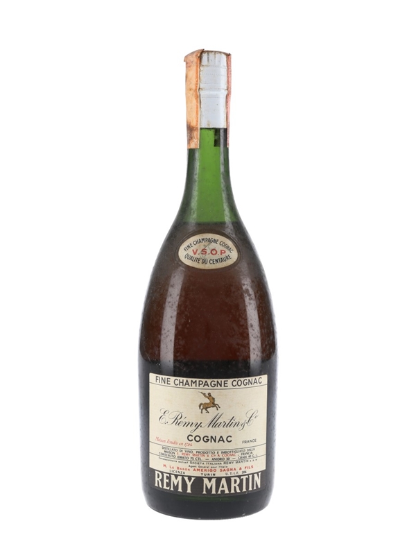 A bottle of Remy Martin VSOP Fine Champagne Cognac. This was imported to the Italian market by Amerigo Sanga, we estimate in the early 1960s.