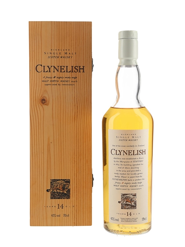 A bottle of Clynelish 14 Year Old Highland Single Malt Scotch Whisky from Diageo's Flora & Fauna series. This proved to be very popular and led to Diageo producing a 14 year old Clynelish as the distillery's standard bottling.