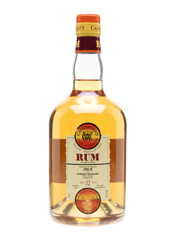 A bottle of Hampden 12 Year Old Jamaica Pot Still rum, distilled in 2000 and bottled at cask strength in 2012 by Cadenhead's.