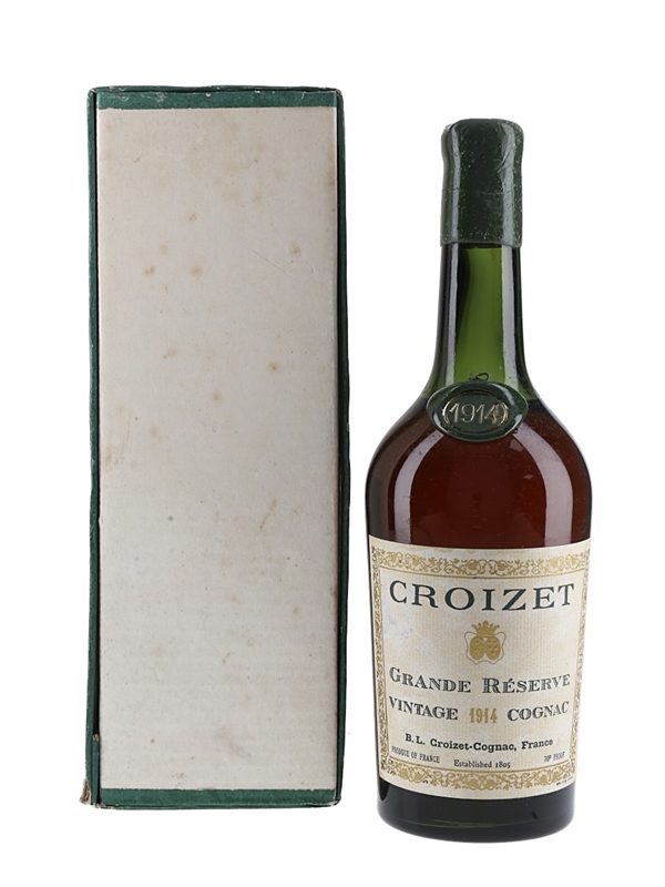 A bottle of Croizet 1914 Grande Réserve Cognac. We estimate this was bottled in the 1950s.